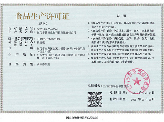 ☆2021年6月18日公司获取食品生产许可证(SC201447070400275)。